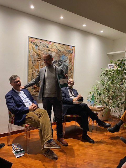 Intorno a argomenti così gravi, durante la serata ruotano deliziosi episodi collaterali. Incontro in ascensore (mentre trasporta due grandi confezioni di acqua) Damiano Rebecchini (docente in Statale di Storia russa) con cui scambiano opinioni sui gusti del pubblico russo mentre tentiamo di far funzionare il citofono. Uno che porta su l’acqua minerale ma ha tradotto Delitto e Castigo. A Marchionne non ho mai perdonato il maglioncino, ma a lui condono senza riserve la resistenza all’uso della cravatta. Maurizio (lui porta i cannoncini di Panarello) riesce ad addolcire anche le considerazioni più amare. Gli unici volumi di Bigatti che girano in salotto vengono rivenduti a caro prezzo (fenomeno reseller come fossero una edizione limitata delle Jordan). Ci sono in sala un paio di designer di gioielli (è un periodo che la mia vita si incrocia con i gioielli, devo dirlo a Erri, così en passant), mentre Alessandro Aleotti riprende il suo fondo del Corriere a proposito di borghesia, Milano e responsabilità sociale.