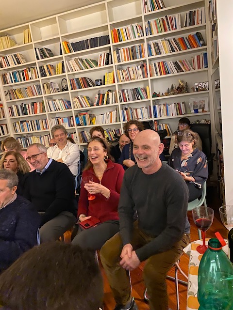Sul divano, sulle poltroncine, sugli sgabelli, tanti amici di sempre, qualche studente nuovo, alcuni scrittori che prima o poi si siederanno là davanti e cambieranno prospettiva del salotto di via Letizia.