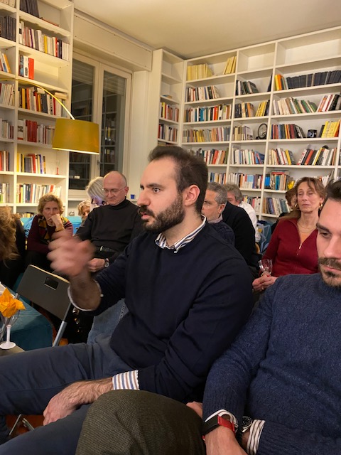 Il salotto è pieno (siamo in 62, roba da record, nessun amico ha bigiato). A presentare il libro Umberto Ambrosoli che questa sera prende le redini dell’intervista. In sala anche Maki Galimberti che ha scattato la foto della quarta di copertina in cui Beniamino ha un certo fantomatico mistero. In prima fila il giornalista Massimo Riva che nel ’90 ha pubblicato i diari di Baffi e questa sera ascolta e non si risparmia un cauto pessimismo sui parallelismi tra passati complotti e attuali attacchi alla costituzione.
