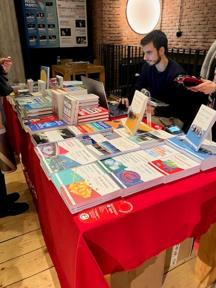 BTW venerdì sono andata a Teatro a vedere La Leggenda del santo bevitore, romanzo di Roth, portato sul palcoscenico dal maestro Carlo Cecchi . Nel foyer del Franco Parenti (che bello è il foyer del Franco Parenti?) era allestito il Book Shop di Egea. E lì in bella mostra il libro di Fuggetta che mi inseguiva, a dimostrare che tra umanesimo e ingegneria le schermaglie continuano e alla fine pare anche essersi simpatiche.