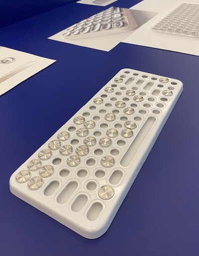 Ne escono un abito di striscioline batik e medaglie, una tastiera di computer in porcellana con tasti in argento, casse musicali in rattan e comandi a sfioro.